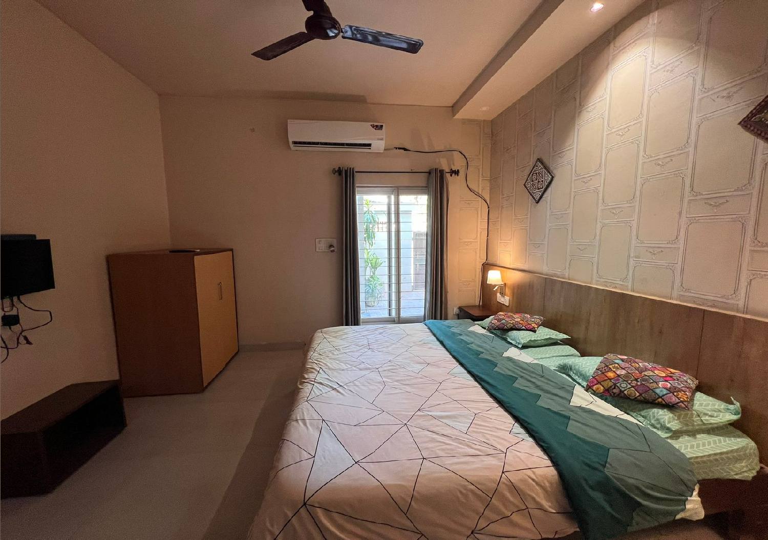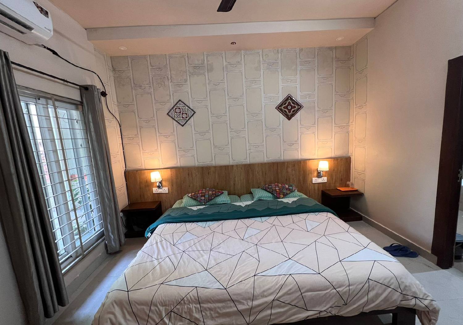 Spacious and elegantly designed, the King Size Double Bed Room offers a perfect blend of comfort and convenience. Featuring a plush king-size bed, modern furnishings, and soothing interiors, this room is ideal for couples or small families. Enjoy a relaxing stay with essential amenities, ample natural light, and a peaceful ambiance that ensures a restful night and a pleasant experience throughout your stay.